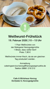 Mit Weißwürsten von der Metzgerei Herzogsägmühle – immer frisch, da sie am gleichen Tag produziert werden.