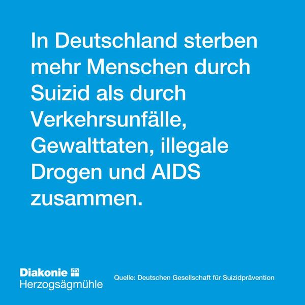 In Deutschland sterben mehr Menschen durch Suizid als durch Verkehrsunfälle, Gewalttaten, illegale Drogen und AIDS zusammen.
