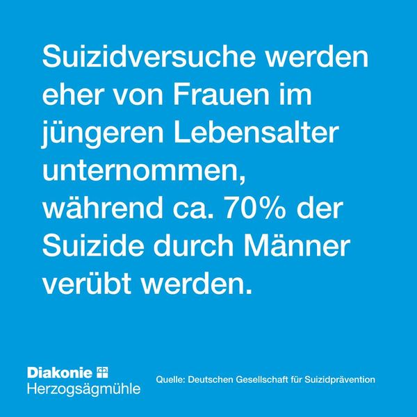 Suizidversuche werden eher von Frauen im jüngeren Lebensalter unternommen, während ca. 70 % der Suizide durch Männer verübt werden.