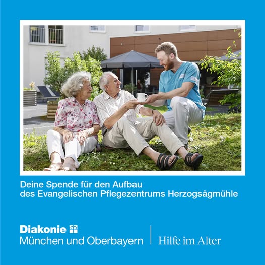 Mit dem neuen Evangelischen Pflegezentrum Herzogsägmühle sollen nachhaltig und konzeptionell neue Schwerpunkte, in Bezug auf die Pflege älterer Menschen in Herzogsägmühle, gesetzt werden. Für die Umsetzung diverser Angebote und deren Ausstattung im Pflegezentrum Herzogsägmühle, wie z. B. einem Demenz-Garten, einer Kapelle mit Abschiedsraum, Terrassen-Anlagen und auch einem Begegnungs-Café bitten wir um eure Unterstützung.